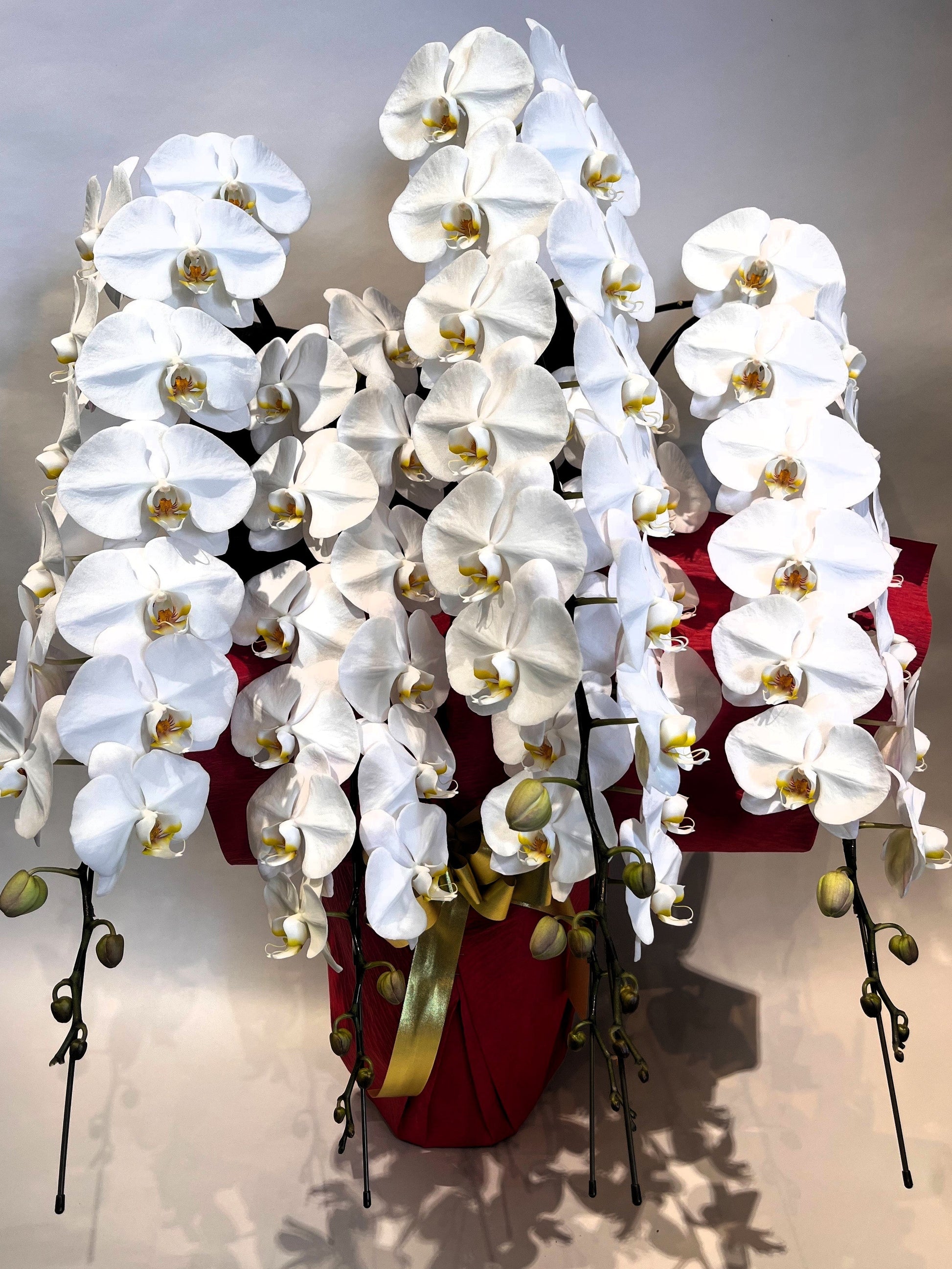 胡蝶蘭 白5本立ち(つぼみを含む50輪以上) オープン記念送料・立札無料